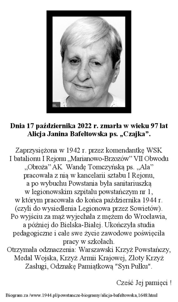 17 czerwca 2022 r. przypadła 79. rocznica bohaterskiej śmierci czterech podchorążych Armii Krajowej osłaniających transport alianckiej broni zrzutowej. Wzorem lat ubiegłych uczciliśmy ofiarę ich życia oddanego Polsce. Ogodz. 1700 spotkaliśmy się w Stanisławowie przy szosie Strużańskiej, by zapalić znicze i złożyć kwiaty przy kamieniu pamięci podchorążych „Alfy” i „Skiby”. Ze względu na budowę tunelu pod torami kolejowymi i ronda w Legionowie, w tym roku nie mogła odbyć się druga część uroczystości w miejscu pamięci „Warty” i „Lato” w Legionowie w Parku Kościuszki. W związku z tym, prelekcja historyczna w Stanisławowie objęła także wydarzenia legionowskie z dnia 20 czerwca 1944 r. Uroczystość była naszym znakiem pamięci dla tych, którzy w walce życie swe oddali za Ojczyznę.